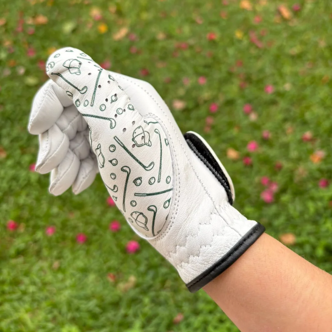 Estos guantes de golf combinan un diseño audaz de símbolos verdes y líneas abstractas sobre fondo blanco, evocando energía y precisión en cada movimiento. Su confección ligera y transpirable permite un agarre firme sin sacrificar comodidad, ideal para jornadas prolongadas en el campo. El contraste entre el arte gráfico y los acabados en negro añade un toque moderno y expresivo, perfecto para quienes buscan destacar sin perder funcionalidad. Pensados para jugadores que valoran tanto el rendimiento como el estilo, estos guantes elevan tu juego con carácter y confianza.