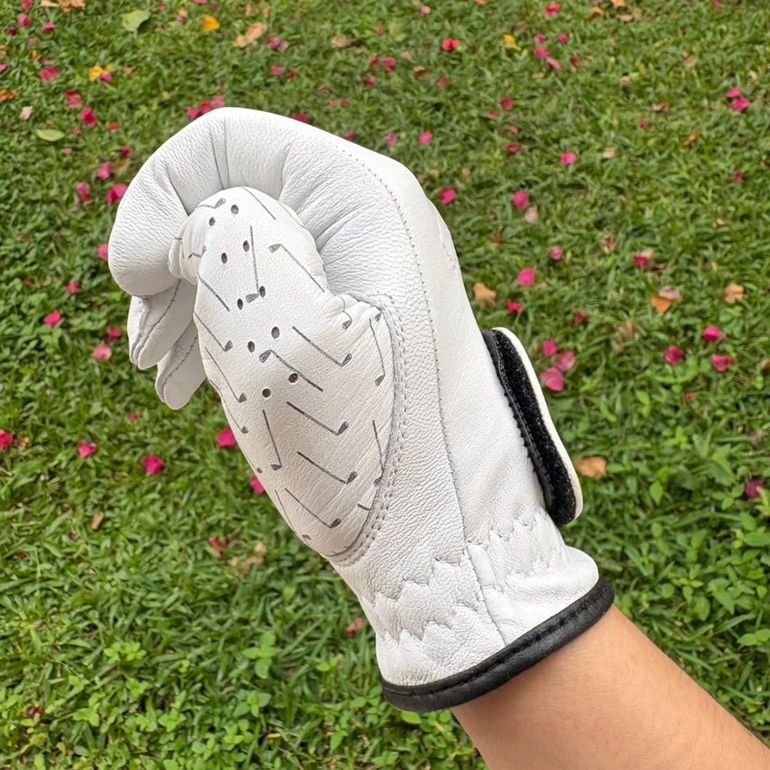 Confeccionados en piel de cabretta 100%, estos guantes de golf ofrecen una flexibilidad superior y un agarre cómodo que se adapta naturalmente a cada movimiento. Su diseño clásico con palos y tees es ideal para jugadores que respetan el juego, pero no se toman demasiado en serio a sí mismos.