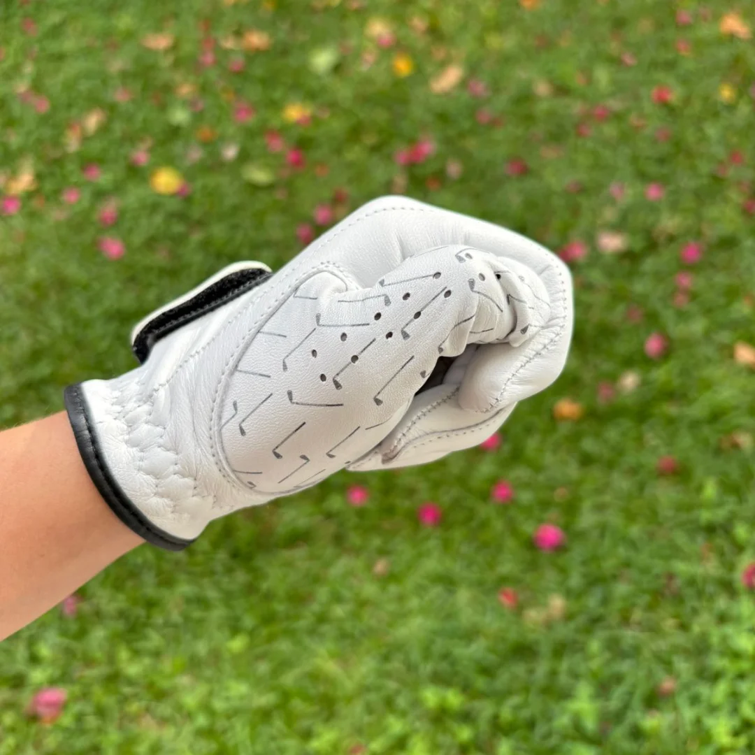 Confeccionados en piel de cabretta 100%, estos guantes de golf ofrecen una flexibilidad superior y un agarre cómodo que se adapta naturalmente a cada movimiento. Su diseño clásico con palos y tees es ideal para jugadores que respetan el juego, pero no se toman demasiado en serio a sí mismos.